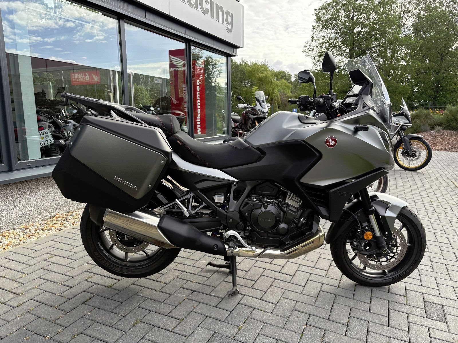 Serienmäßig sind bereits die Heizgriffe, verstellbares Windschild, Tempomat sowie Apple Car Play / Android Auto, sowie die in Fahrzeugfarbe lackierten Seitenkoffer (One Key System) an Bord.