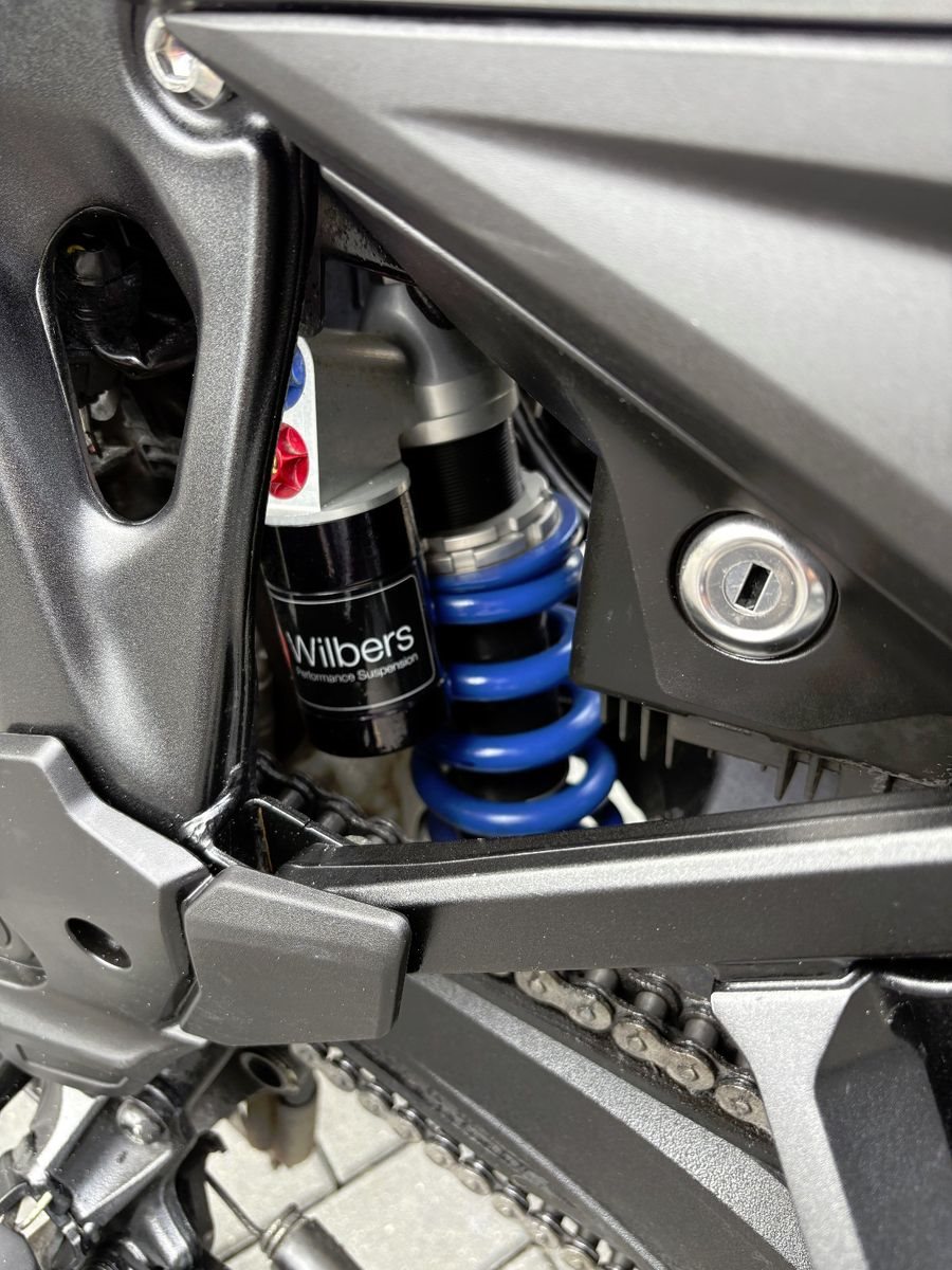 Es ist ein hochwertiger, voll einstellbarer Wilbers Stoßdämpfer verbaut.